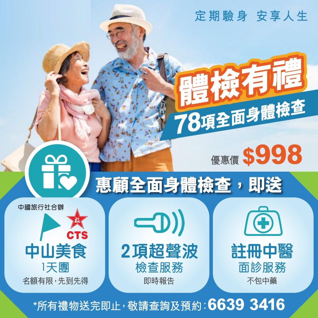 現凡惠顧「72項全面身體檢查$998」,即獲豐富禮遇🎊